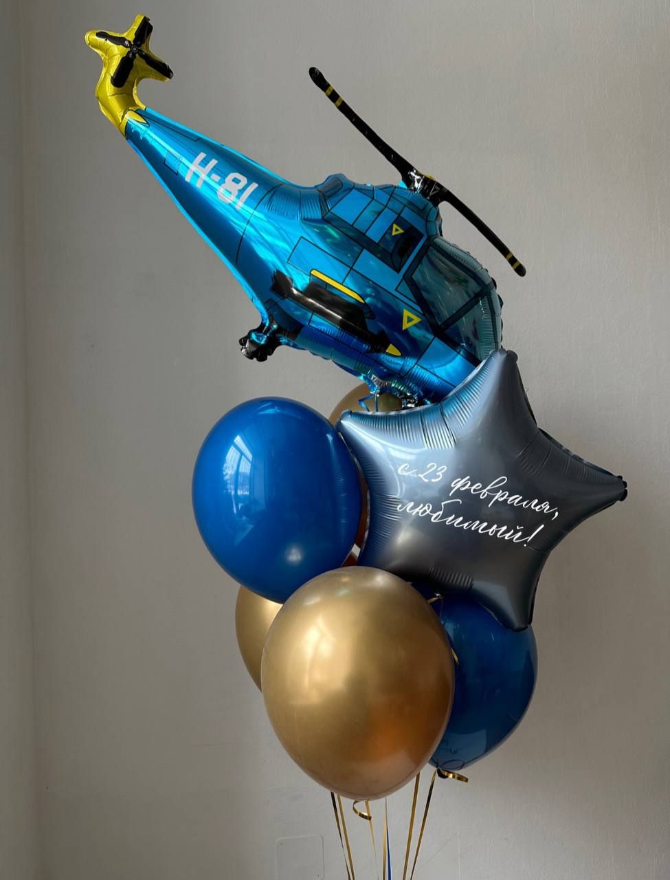 - 5 латексных шаров (ярко синий. золото хром)