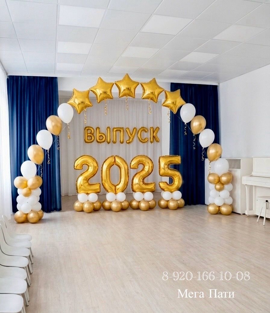 - Фольгированные цифры "2025" ( зависит от года ) на устойчивых основаниях из шаров