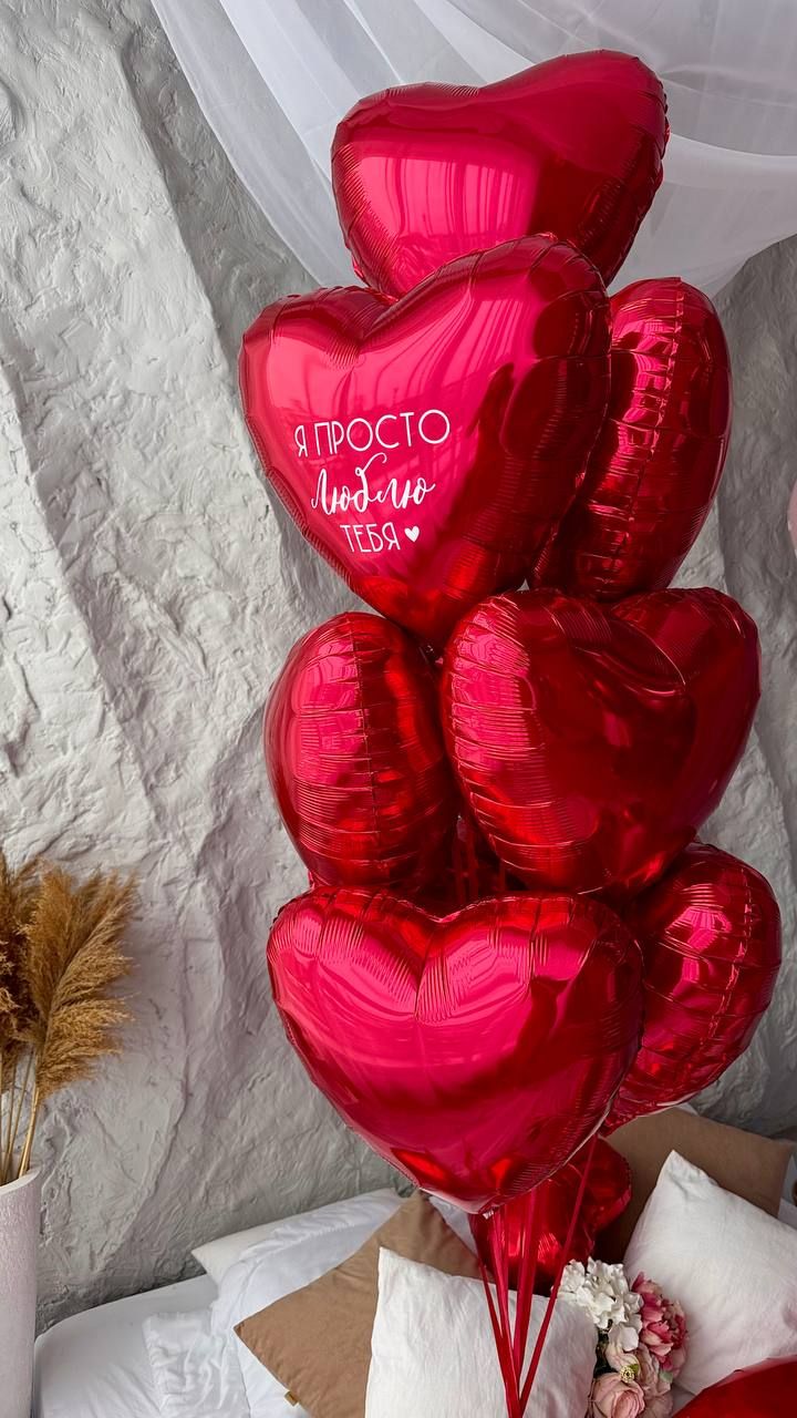 - 10 фольгированных сердец на грузике на одном надпись на грузике