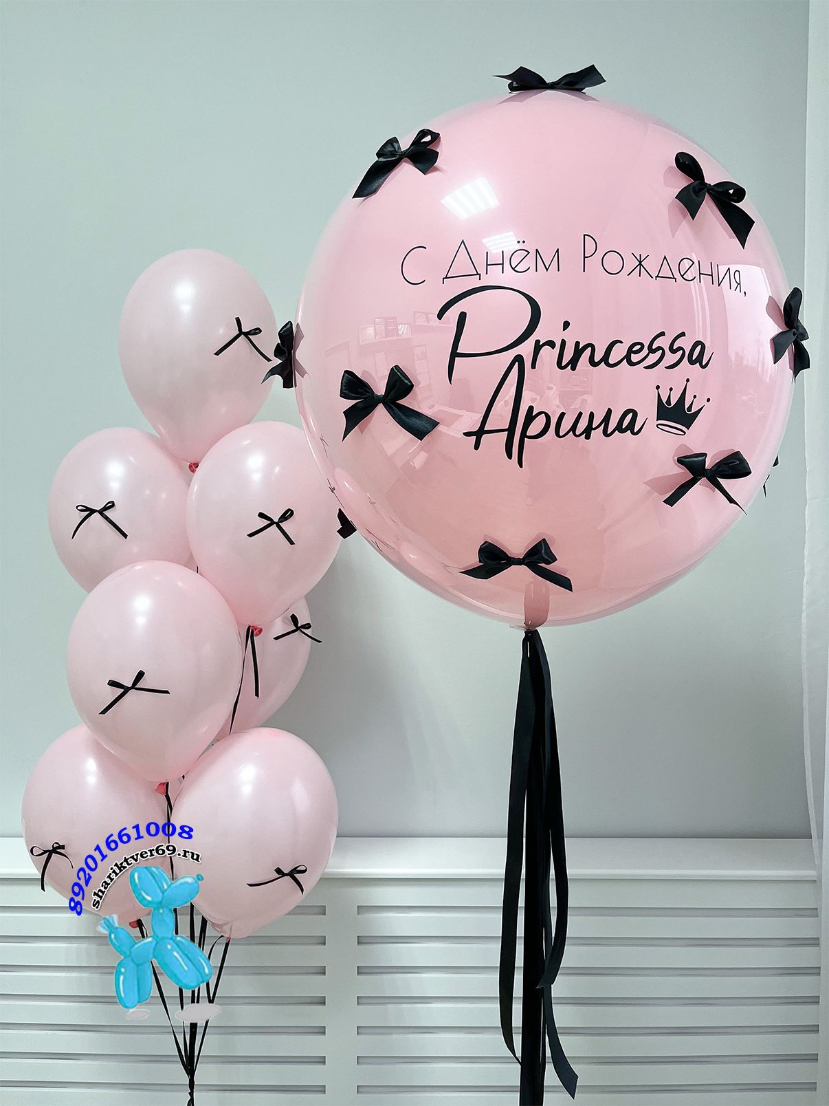 - Гигант стекло 24' c индивидуальной надписью и декором бантики;