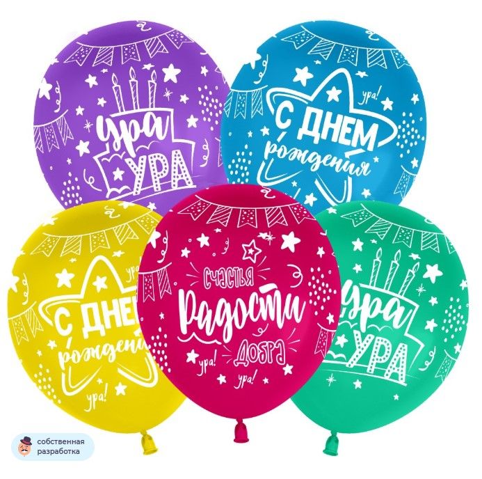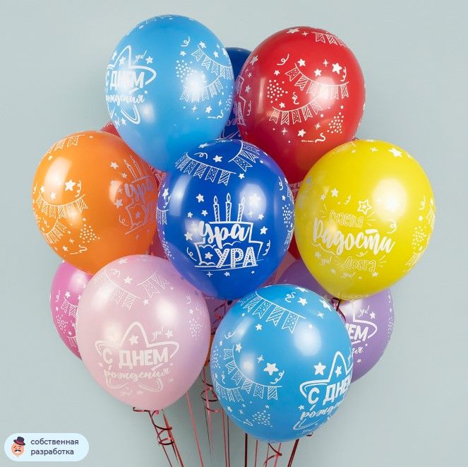 Шары «С Днём Рождения» Универсальные это тематические воздушные шары, накачанные гелием. Шары одного цвета из набора не выбираем — берём максимально разные по наличию.