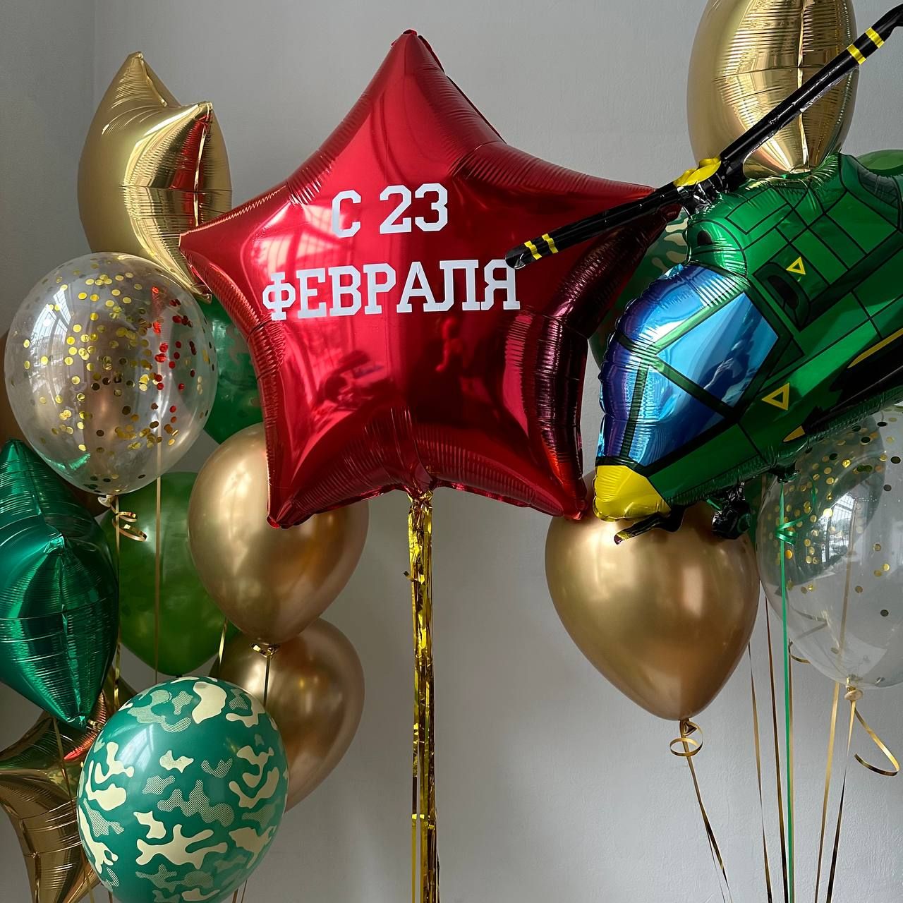 Это готовый набор, который не требует дополнительного подбора шаров. Он создаёт праздничную атмосферу, отлично смотрится в интерьере и подходит для памятных фото. Такой вариант часто выбирают в качестве подарка мужу, папе, коллеге или руководителю.